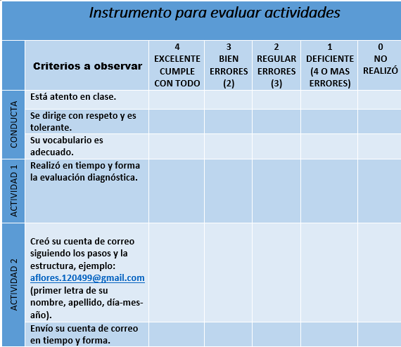 Asunto: envío de correo electrónico, espacio en blanco:escribe tú nombre completo y grado al que perteneces.